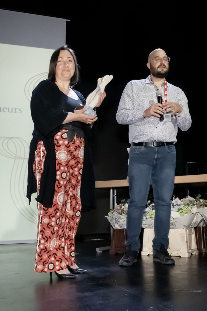 Elles ont toutes 3 pu recevoir les magnifiques trophées taillés dans la pierre et décorés à la feuille d’or et à la poudre d’argent, confectionnés par Virginie VANBELLE (VIRGINIE TAILLE DE PIERRE), nominée des trophées 2024.