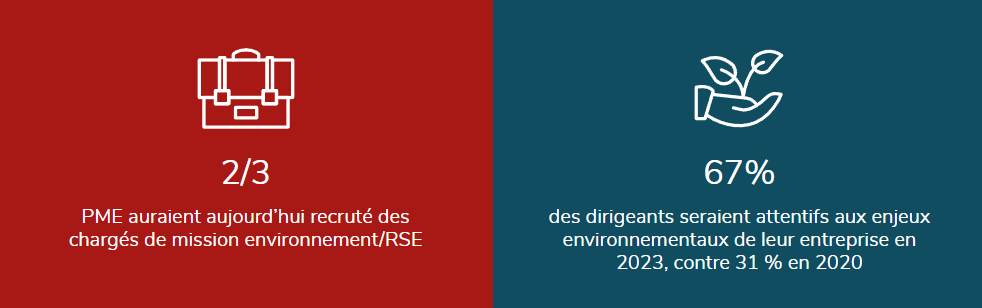 Certains secteurs, exposés aux effets négatifs du dérèglement climatique, progressent pas à pas en adoptant de simples améliorations (par exemple, investir dans des LED) mais peinent encore à revoir plus globalement leur stratégie. Néanmoins, l’étude souligne que de nombreuses PME sont engagées et recrutent davantage sur des postes dédiés à la RSE.