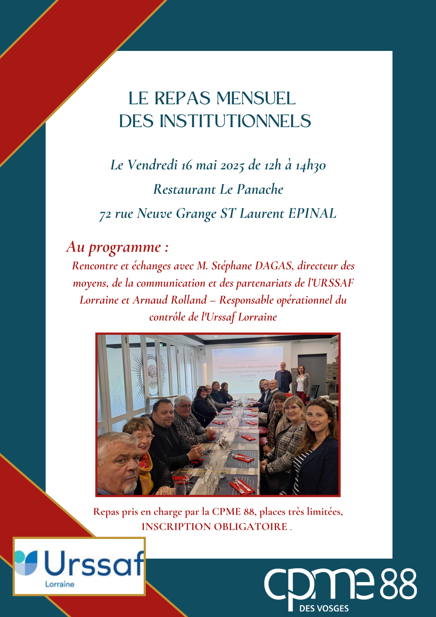 La CPME 88 vous propose un nouveau déjeuner mensuel sur le thème du contrôle de l’URSSAF.